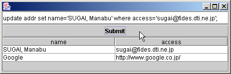 | 図:JDBCSwingUpdateの実行結果 |
